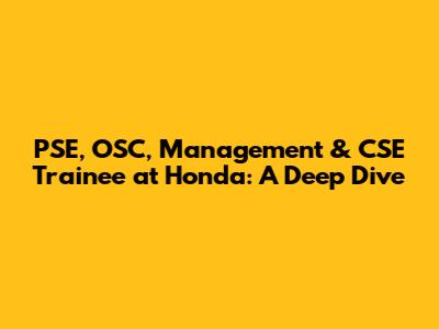 PSE, OSC, Management & CSE Trainee At Honda: A Deep Dive