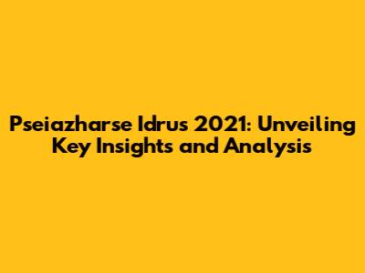 Pseiazharse Idrus 2021: Insights And Analysis