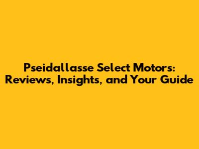 Pseidallasse Select Motors: Reviews, Insights, And Your Guide