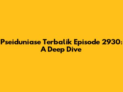 Hey guys! Let's dive deep into the world of Pseiduniase Terbalik, specifically episode 2930. This episode was a real roller coaster, and we're going to break down all the juicy bits, the important moments, and what it all really means. Get ready for some serious analysis, because we're about to unpack everything! Buckle up, buttercups, it's going to be a wild ride. This episode was an important one in the whole arc, and we'll analyze the story and characters in detail to uncover all the little details of the show.
