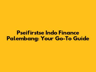 Pseifirstse Indo Finance Palembang: Your Go-To Guide