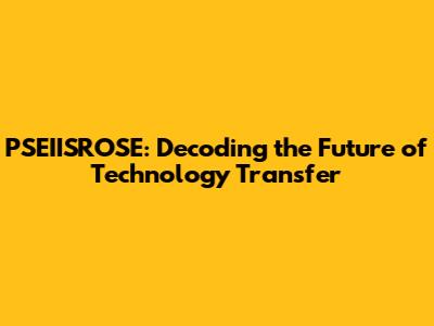 PSEIISROSE: Decoding The Future Of Technology Transfer