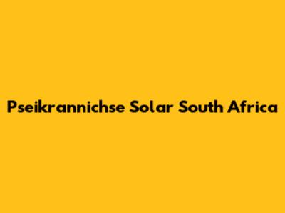 Pseikrannichse Solar Solutions In South Africa