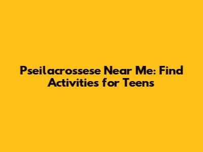 Pseilacrossese Near Me: Find Activities For Teens