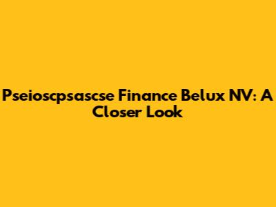 Hey guys! Today we're diving deep into a company that might not be on everyone's radar but is making its mark: Pseioscpsascse Finance Belux NV. If you're interested in the financial landscape of the Benelux region, stick around because we're about to unpack what this entity is all about. We'll cover its background, its role in the market, and why it matters. So, grab your favorite beverage, get comfy, and let's get started on exploring Pseioscpsascse Finance Belux NV.