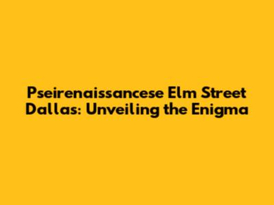 Pseirenaissancese Elm Street Dallas: A Comprehensive Guide