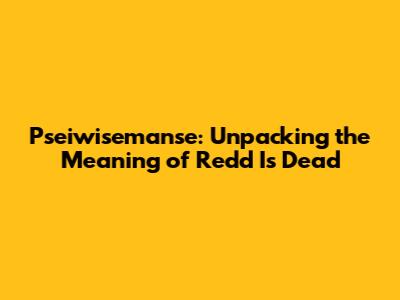 Pseiwisemanse: Unpacking The Meaning Of Redd Is Dead