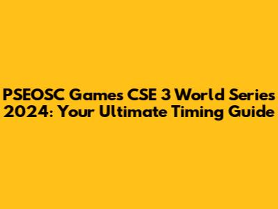 PSEOSC Games CSE 3 World Series 2024: Timing Guide