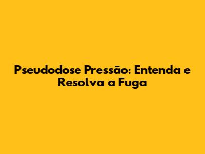 Pseudodose Pressão: Entenda E Resolva A Fuga