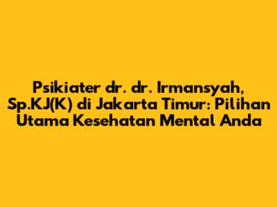Psikiater Dr. Dr. Irmansyah, Sp.KJ(K) Di Jakarta Timur