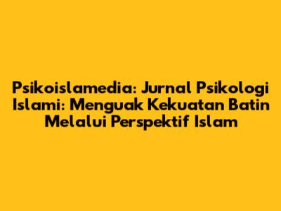 Psikoislamedia: Jurnal Psikologi Islami