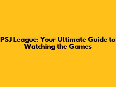 PSJ League: Your Ultimate Guide To Watching The Games