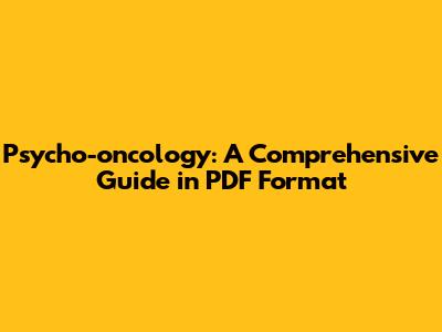 Psycho-oncology PDF: A Comprehensive Guide