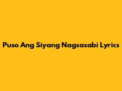 Puso Ang Siyang Nagsasabi: Lyrics And Meaning