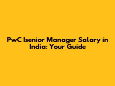 PwC Isenior Manager Salary In India: A Comprehensive Guide