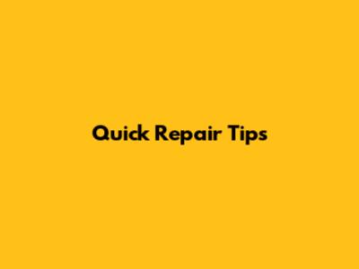 Quick Repair Tips