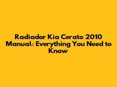 Radiador Kia Cerato 2010 Manual: Everything You Need To Know