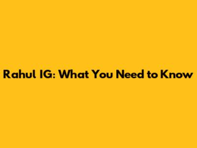 Rahul IG: What You Need To Know