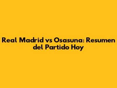 Real Madrid Vs Osasuna: Resumen Del Partido Hoy
