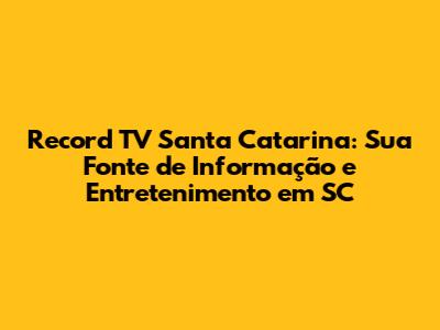 A Programação da Record TV Santa Catarina: Variedade e Qualidade