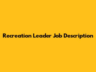 Recreation Leader Job Description: Key Responsibilities