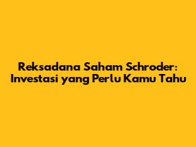 Memahami Lebih Dalam: Apa Itu Reksadana Saham Schroder?