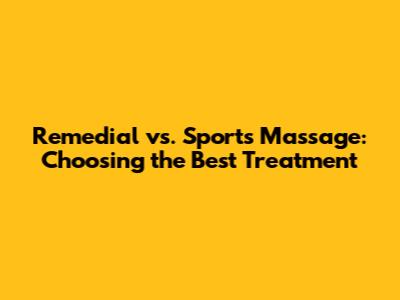- Timing: Remedial massage can be done at any time to address pain or dysfunction. Sports massage is often strategically timed before, during, or after exercise to optimize performance, prevent injury, and aid recovery. It is integrated into the training regimen.