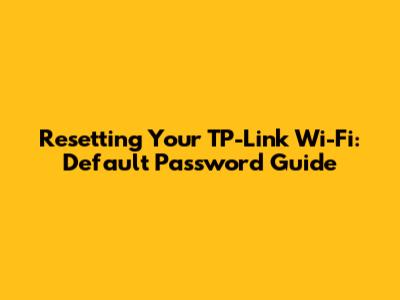 Resetting Your TP-Link Wi-Fi: Default Password Guide