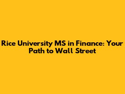 Rice University MS Finance: Your Path To Wall Street
