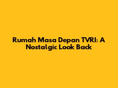 Rumah Masa Depan TVRI: A Nostalgic Look Back