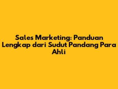 Sales Marketing: Panduan Lengkap Dari Sudut Pandang Para Ahli