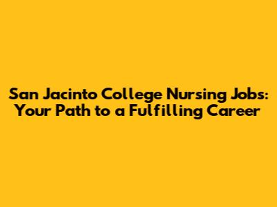 Are you seeking San Jacinto College nursing jobs? Embarking on a nursing career at San Jacinto College can be an incredibly rewarding path. San Jacinto College, with its commitment to excellence and community impact, offers a variety of nursing positions that can cater to different skill sets and career aspirations. Whether you're a seasoned nurse looking for a change or a recent graduate eager to start your professional journey, understanding the landscape of nursing jobs at this institution is crucial. Let's dive into what makes San Jacinto College a great place to work, the types of nursing jobs available, and how to navigate the application process successfully.