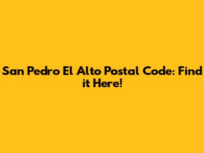 San Pedro El Alto Postal Code: Find It Here!