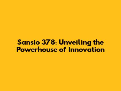Sansio 378: A Deep Dive Into Its Features & Benefits
