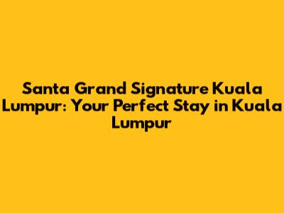 Hey guys! Planning a trip to Kuala Lumpur and looking for the perfect place to stay? Let's dive into why the Santa Grand Signature Kuala Lumpur might just be what you need. This hotel offers a blend of comfort, convenience, and style, making it an excellent choice for both leisure and business travelers. Nestled in a prime location, it provides easy access to some of the city's most iconic landmarks and vibrant neighborhoods. Whether you're a first-time visitor or a seasoned traveler to KL, finding the right accommodation can significantly enhance your overall experience. So, let's explore what makes the Santa Grand Signature Kuala Lumpur a standout option.