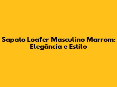 Sapato Loafer Masculino Marrom: Elegância E Estilo