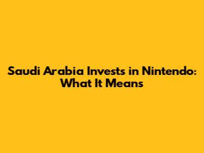 Saudi Arabia Invests In Nintendo: What It Means