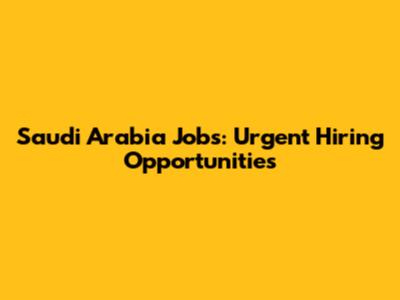 Saudi Arabia Jobs: Urgent Hiring Opportunities