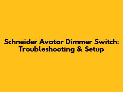 Schneider Avatar Dimmer Switch: Troubleshooting & Setup