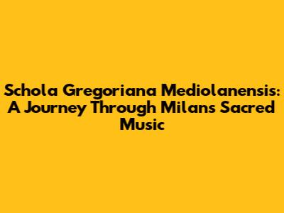 Schola Gregoriana Mediolanensis: A Journey Through Milan's Sacred Music