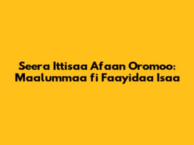 Seera Ittisaa Afaan Oromoo: Maalummaa Fi Faayidaa Isaa