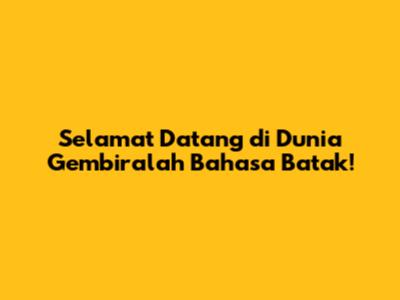 Selamat Datang Di Dunia Gembiralah Bahasa Batak!