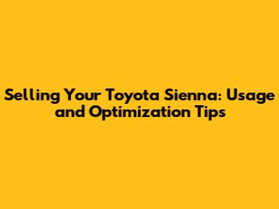 Selling Your Toyota Sienna: Usage And Optimization Tips