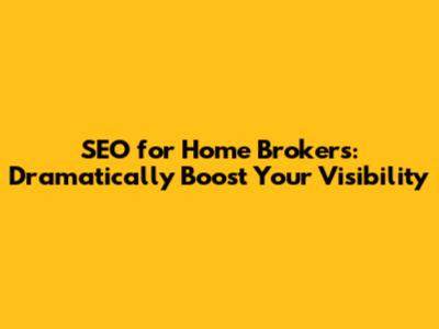 SEO For Home Brokers: Dramatically Boost Your Visibility