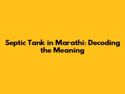 Septic Tank In Marathi: Understanding The Meaning