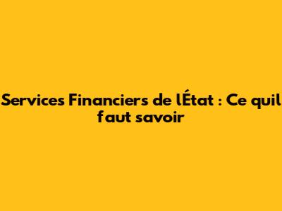 Services Financiers De L'État : Ce Qu'il Faut Savoir