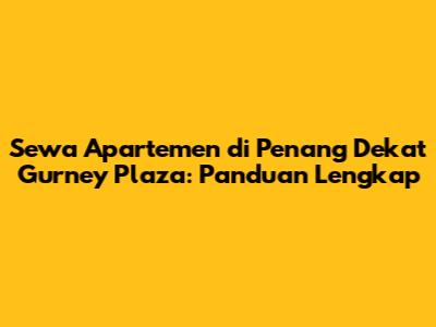 Sewa Apartemen Di Penang Dekat Gurney Plaza: Panduan Lengkap