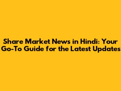 Share Market News In Hindi: Latest Updates & Insights