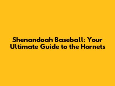 Shenandoah Baseball: Your Ultimate Guide