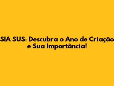 SIA SUS: Descubra O Ano De Criação E Sua Importância!